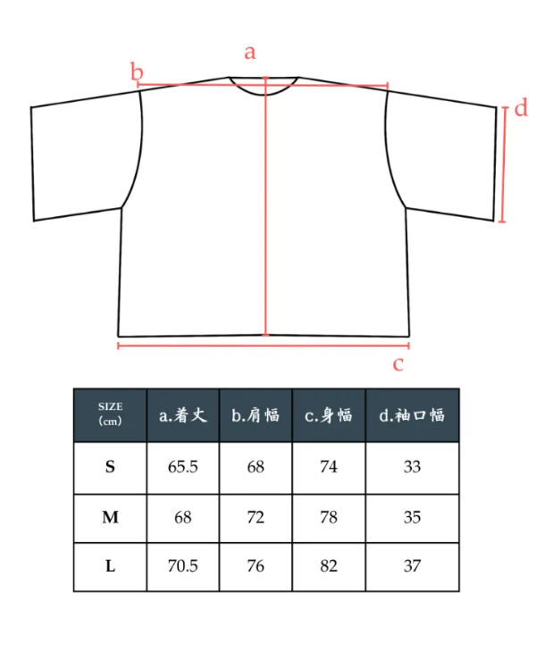 ・Lサイズ :着丈 70.5 / 肩幅 76 / 身幅 82 (cm)